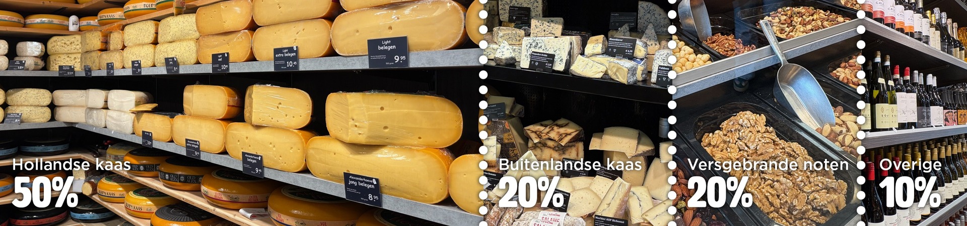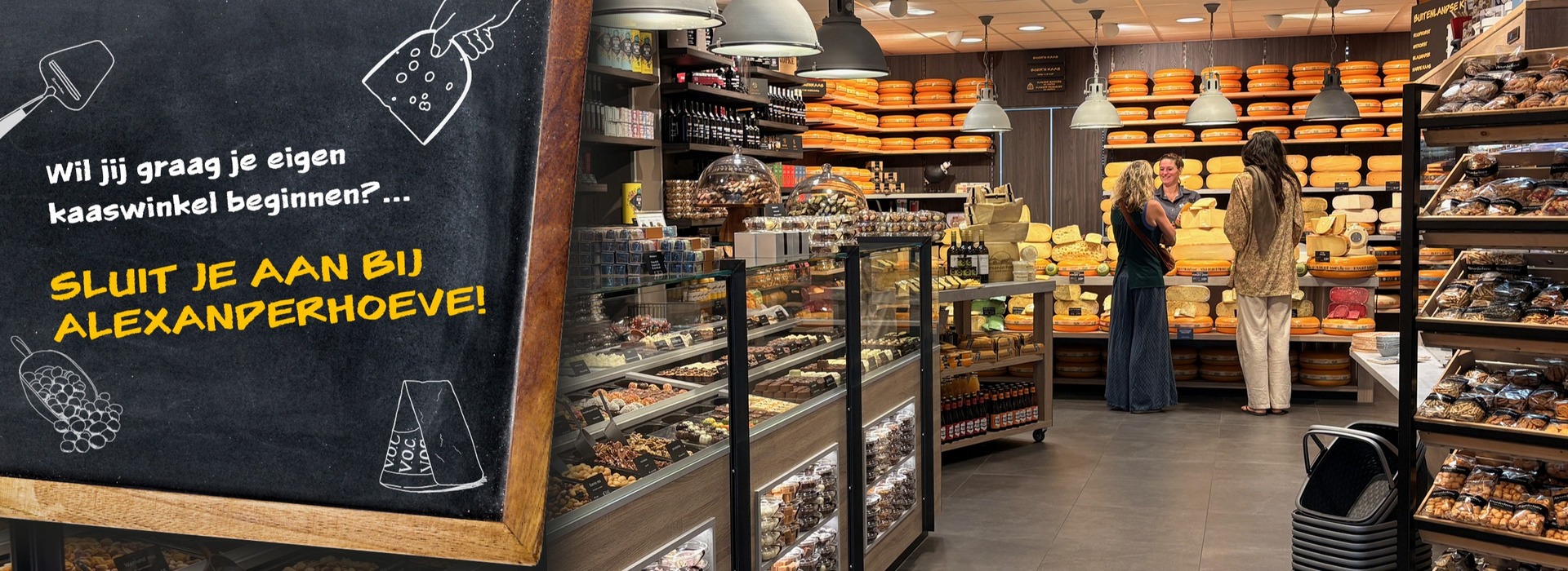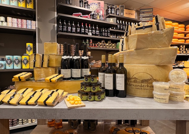 De Alexanderhoeve winkels staan vol met mooie producten van onze vaste leveranciers en daar zijn we trots op! Ons vaste assortiment bestaat uit Hollandse kazen, buitenlandse kazen, vers gebrande noten, bonbons en een groot aantal bijproducten, zoals wijn, kaasbegeleiders, etc.